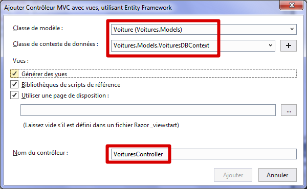 - Des fichiers de vues Razor pour les opérations CRUD (Views/Voitures/*.cshtml)